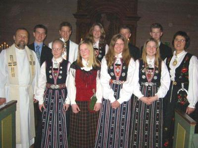 Årets konfirmanter i Frøyset sokn. Framme frå