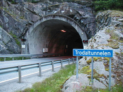 på E39 gjennom Masfjorden. Tunnelen er 848 meter.
