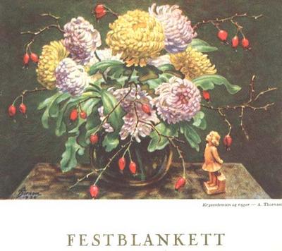 "Krysantemum og nyper". Kunstnar A. Thornam. I bruk frå