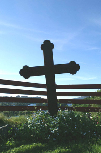 Alversund kyrkje. Gamal gravkross frå 1850. Foto:
