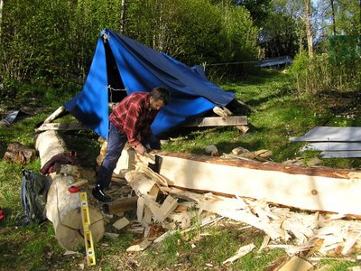 brukar han bilo til å øksa vekk små bitar av gangen.