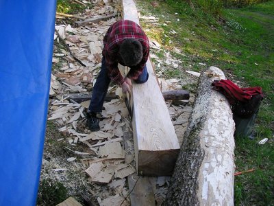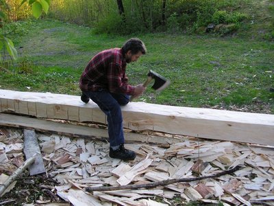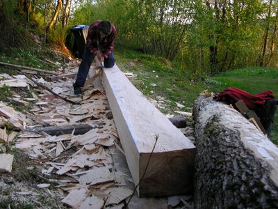 stokken, til å øksa ein stor firkanta stav til meg. Eg tok