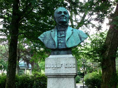 Bronsestatua av Ludolf Eide, som står i byparken,