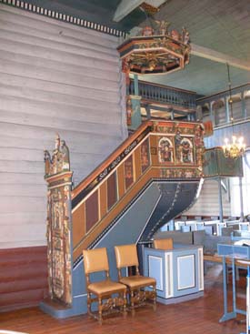 rundt nesten heile kyrkjerommet. Fine rosemalinger (rokokko) på galleri
