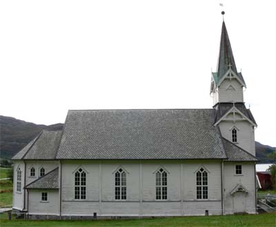 1914 av biskop Johan W. Erichsen. Kyrkja er bygd i tre som ei langkyrkje