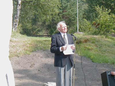 Magnor Midtun har avduka minnesmerket og får overrekt