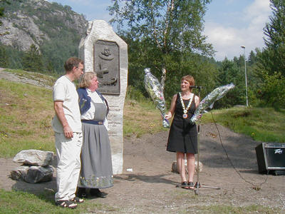 Ordførar Trude Brosvik held tale ved minnestøtta.