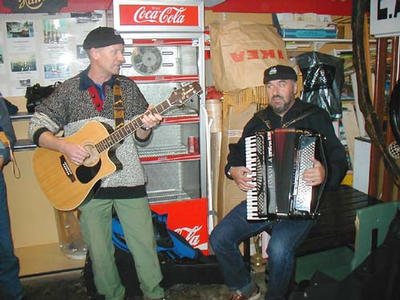 Christian Børs, Lars Fauske (gitar) og Eyolf Sylta (trekkspel) oppfordra