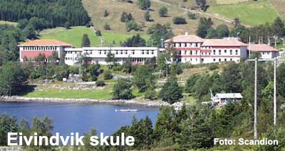 ![]() Eivindvik skule ligg i kommunesenteret i Eivindvik og er ein 1 - 10 skule med skulefritidsordning og idrettsskule. Eivindvik skulekrins ligg i grenseområdet mellom øy og fastland på sørsida ved innløpet til Sognefjorden. Mange av elevane kjem til skulen med buss/båt. Dei som reiser lengst har om lag 2 timar reisetid kvar dag. Elevane som soknar til skulekrinsen kjem frå: Hisarøy, Dingja, Vatne, Brosvik, Rutledal, Nordgulen, Haveland, Nese, Svaberg, Flolid og Eivindvik. Eivindvik skule