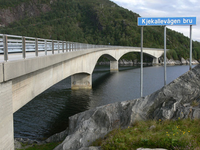 Kjekallevågen bru (~300 m) kryssar Kjekallevågen