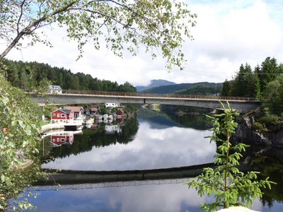 Brua, som stod ferdig i 1987, kryssar kommunegrensa mellom