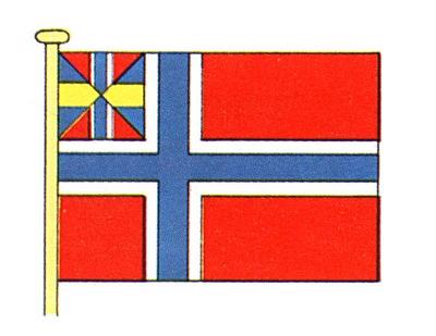 Det norske handelsflagg som vart brukt 1844 - 98, med unionsmerket, populært kalla "sildesalaten", i øverste felt nærmast stanga.