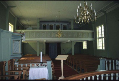 Johannes Heltveit, frå dåverande Hosanger herad, arbeidde altarringen, altarbord og altartavla medan Torkjel Kvinge frå Masfjorden, laga preikestolen. Foto: Arne Høyland.