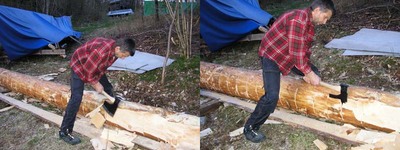 brukar han bilo til å øksa vekk små bitar av gangen.