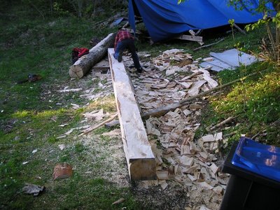 stokken, til å øksa ein stor firkanta stav til meg. Eg tok