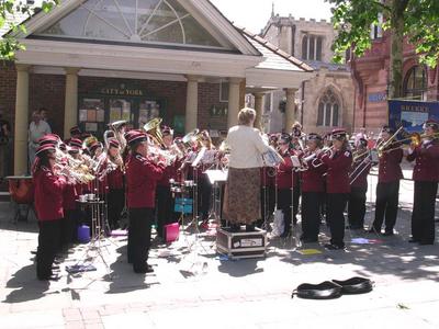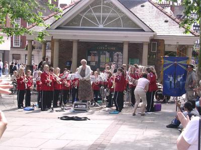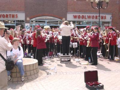 i veg mot byen for å spele konsert i gågata. Byrknes starta