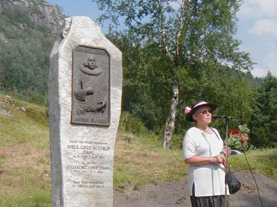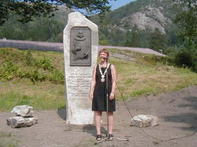 Ordførar Trude Brosvik held tale ved minnestøtta.