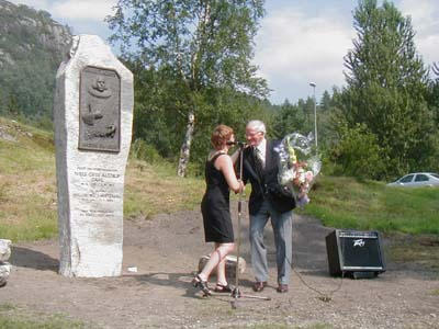 Magnor Midtun har avduka minnesmerket og får overrekt