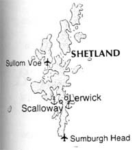 vi måtte gå langs land på nord for å koma til Lerwick.