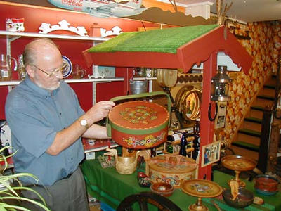 raritetar. Einar har i mange år sysla med rosemåling, og her