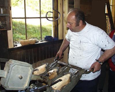 kappa dei opp til treskoemner. Denne saga er å finne i fabrikken