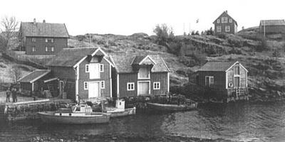 med handel i ei sjøbua i Barvågen som var påbygd med
