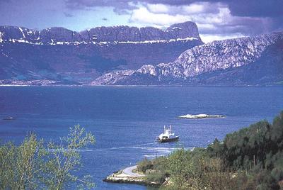 til det låglendte ytre Sunnfjord og den smale Dalsfjorden. Ferjene